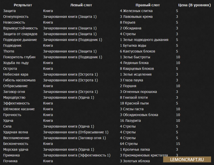 Мод Anvil Enchantments позволит улучшить стандартную наковальню, которую вы используете в игре. После установки данного мода вам будет доступен крафт книг с чарами прямо на наковальне. Для этого вам понадобятся только опыт, материалы и книжка.